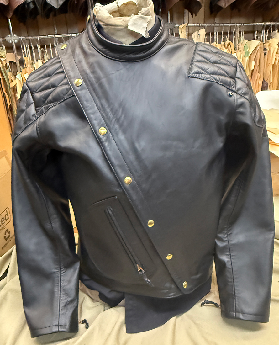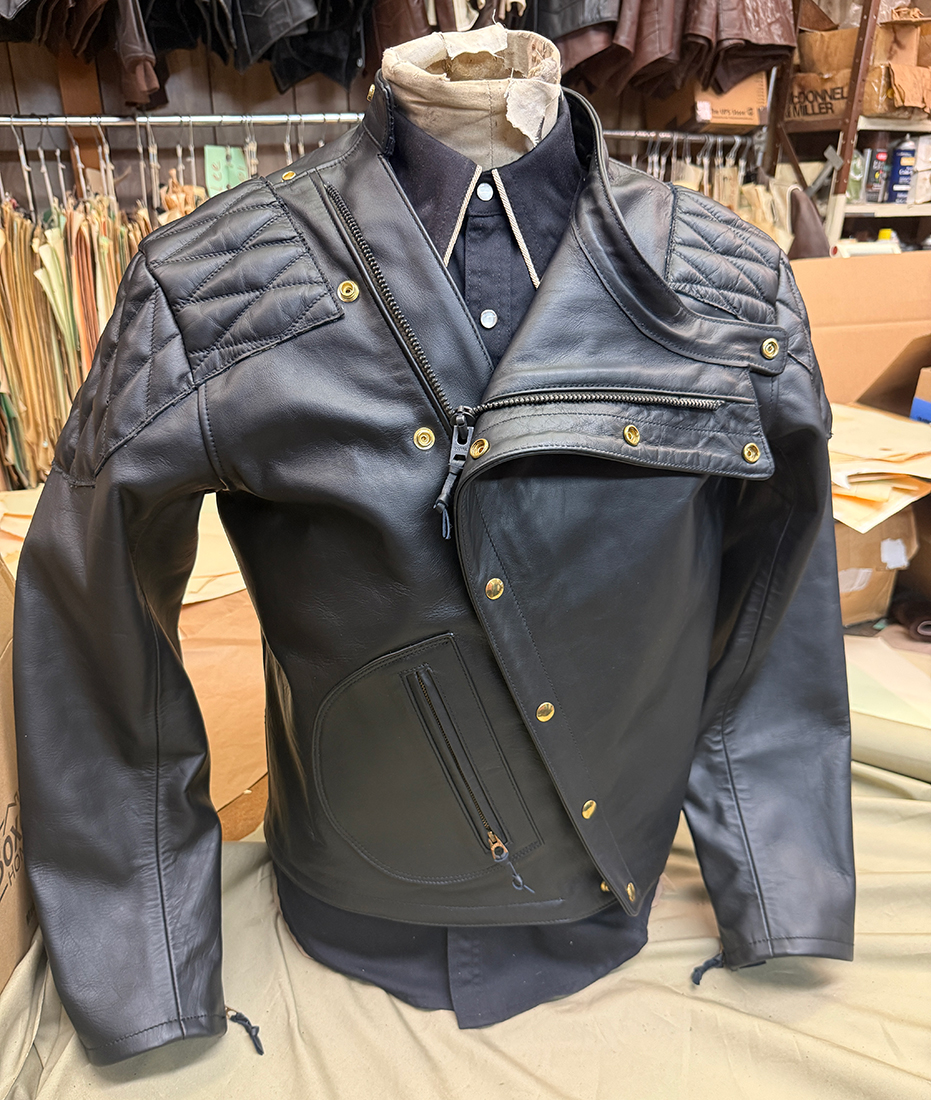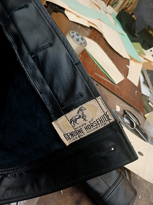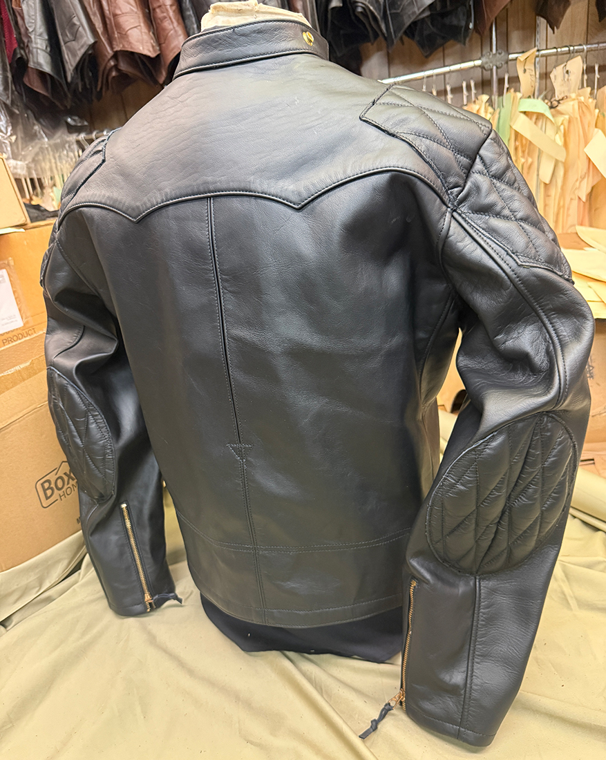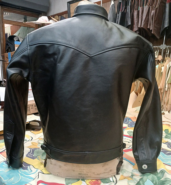 0063 LEATHERTOGS 'A' AS NEW 4 OZ. BLACK HORSEHIDE BROWN 1940s N.O.S. RAYON LINING CUSTOM BLACK-ON-BLACK HARDWARE 42R REG. 2450.00 SALE 1750.00 SOLD |