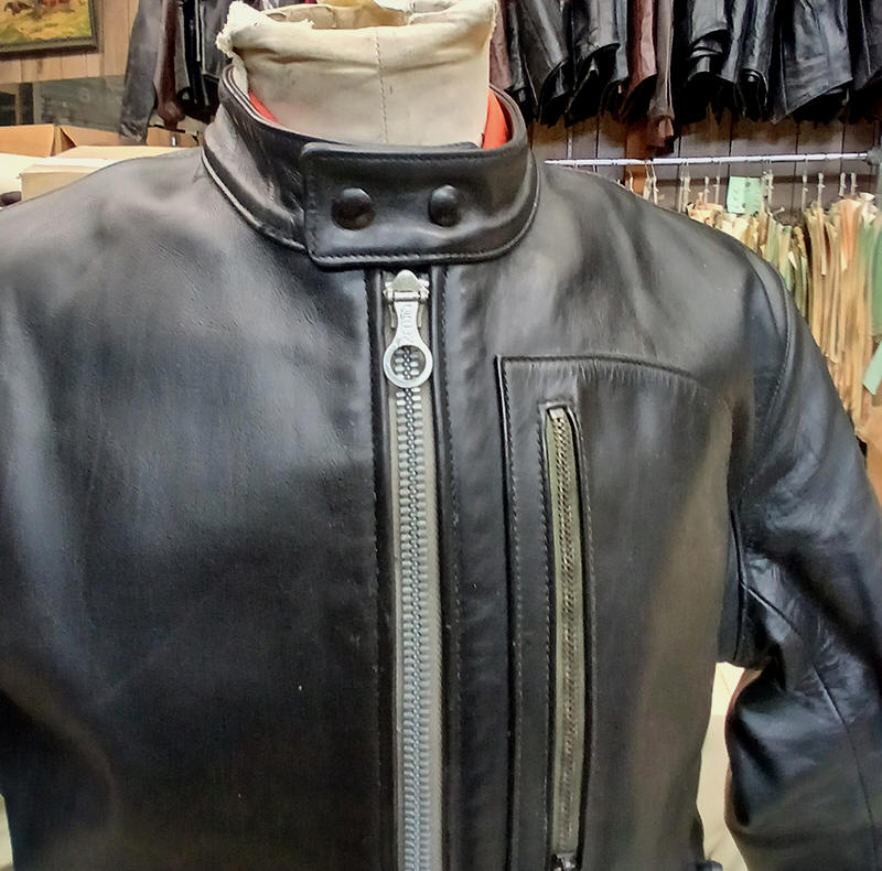 ![]() s''SPEED DEMON' 0012 CUSTOM BLACK HORSEHIDE HEAVYWEIGHT 3.5 OZ. 46 ORIG. CROWN & CONMAR ZIPPERS, NOS VINTAGE MOUTON, CAST STUDS EXCELLENT LIGHTLY USED WAS 2975.00 SPECIAL 1850.00 SOLD