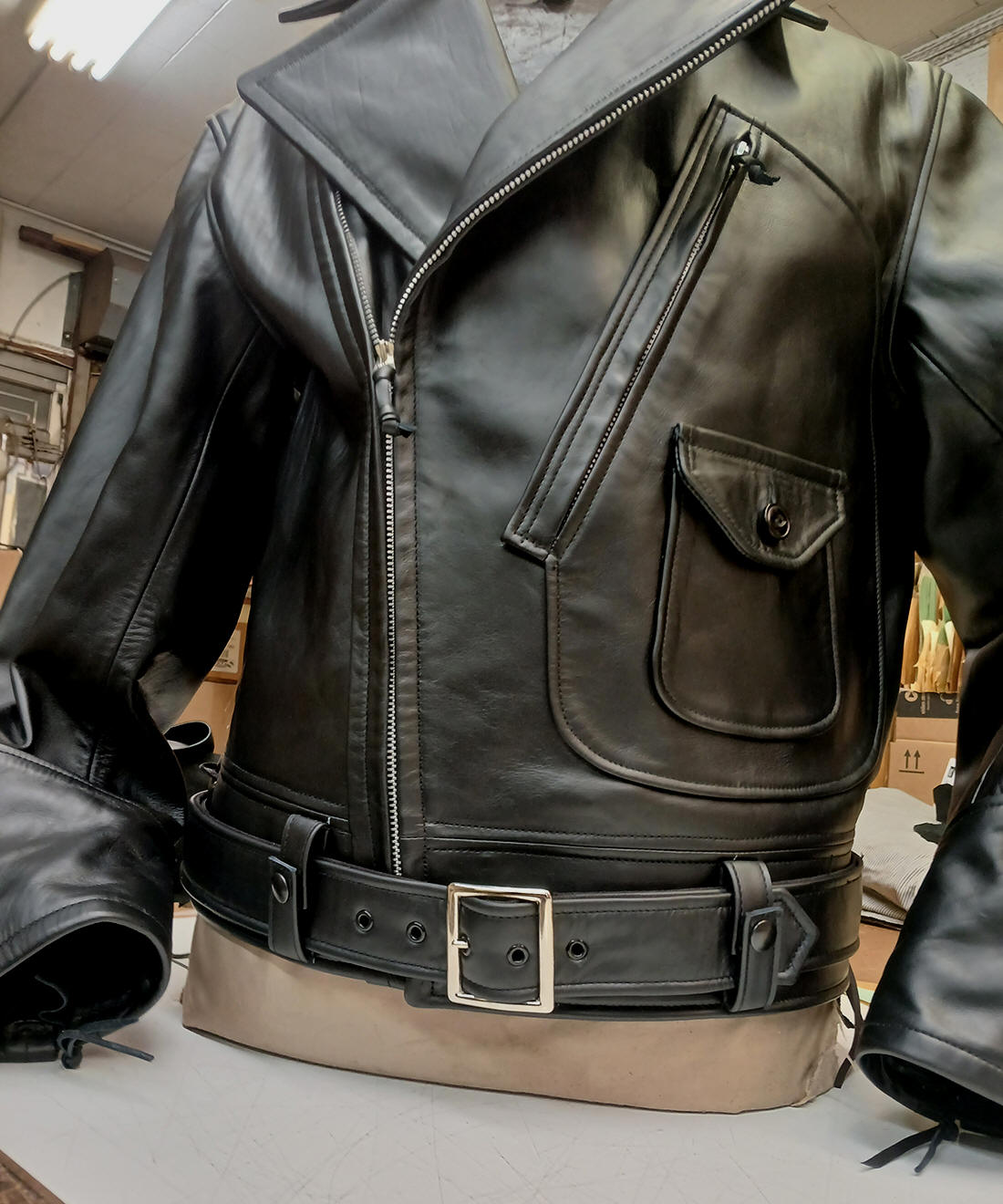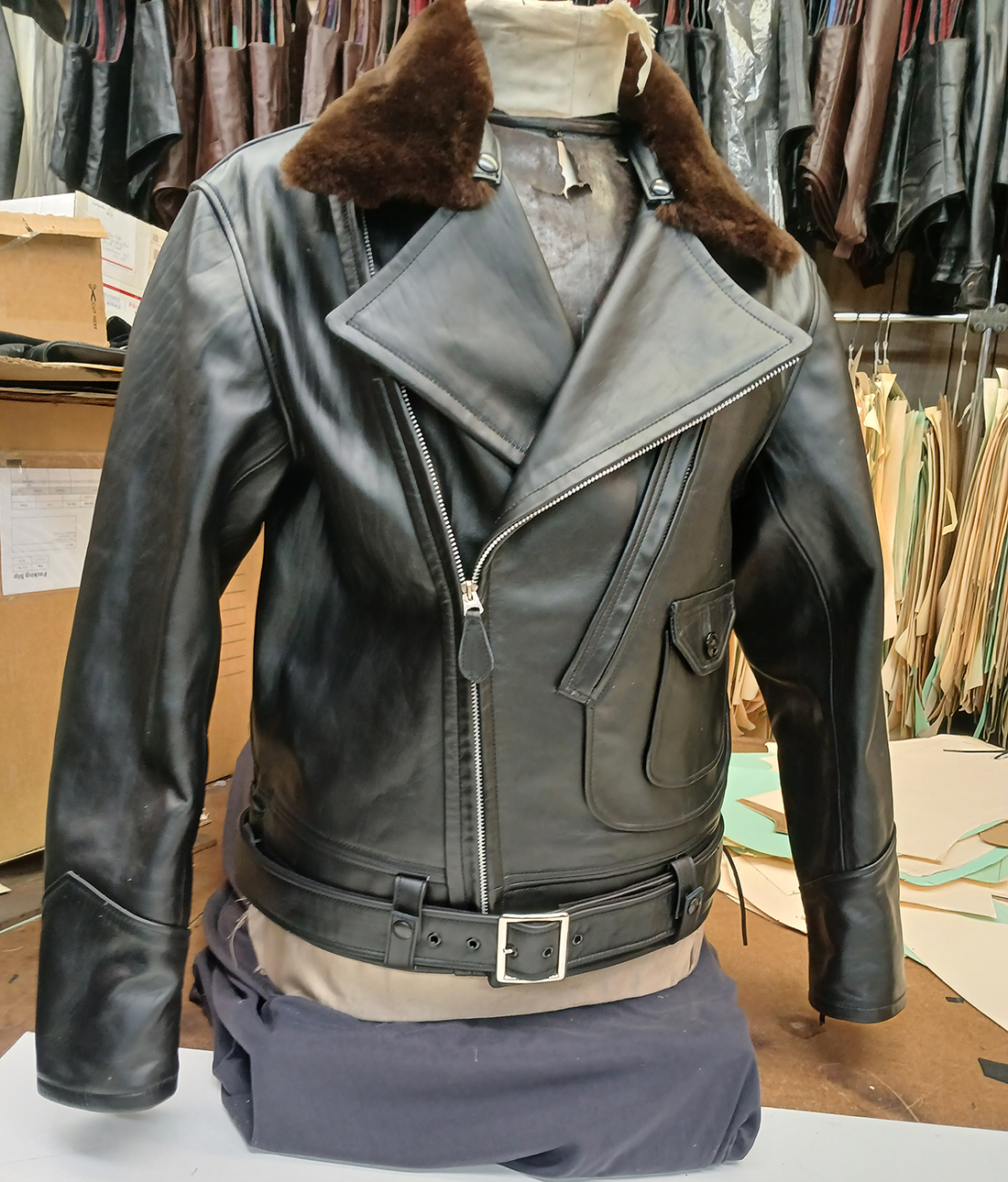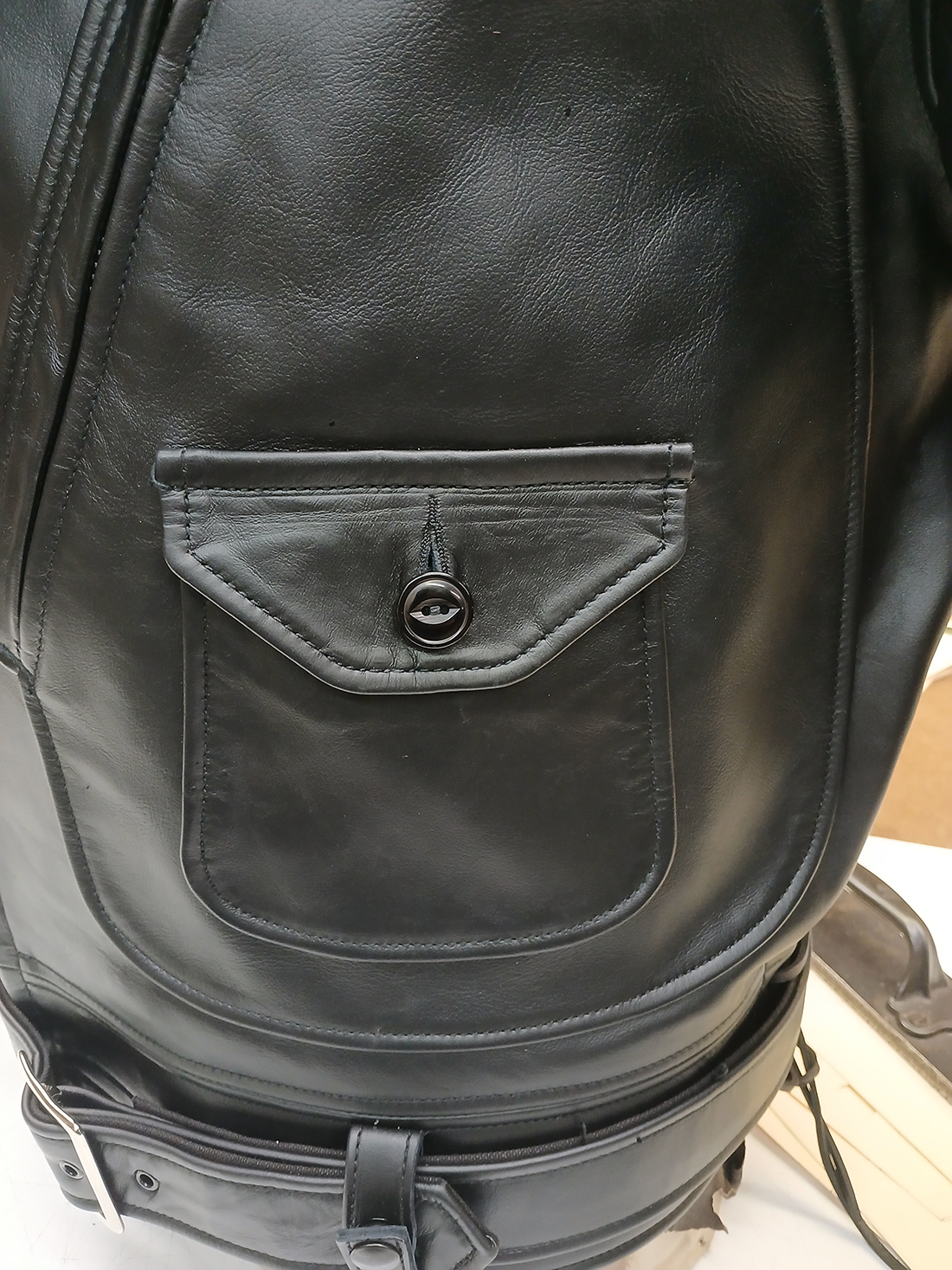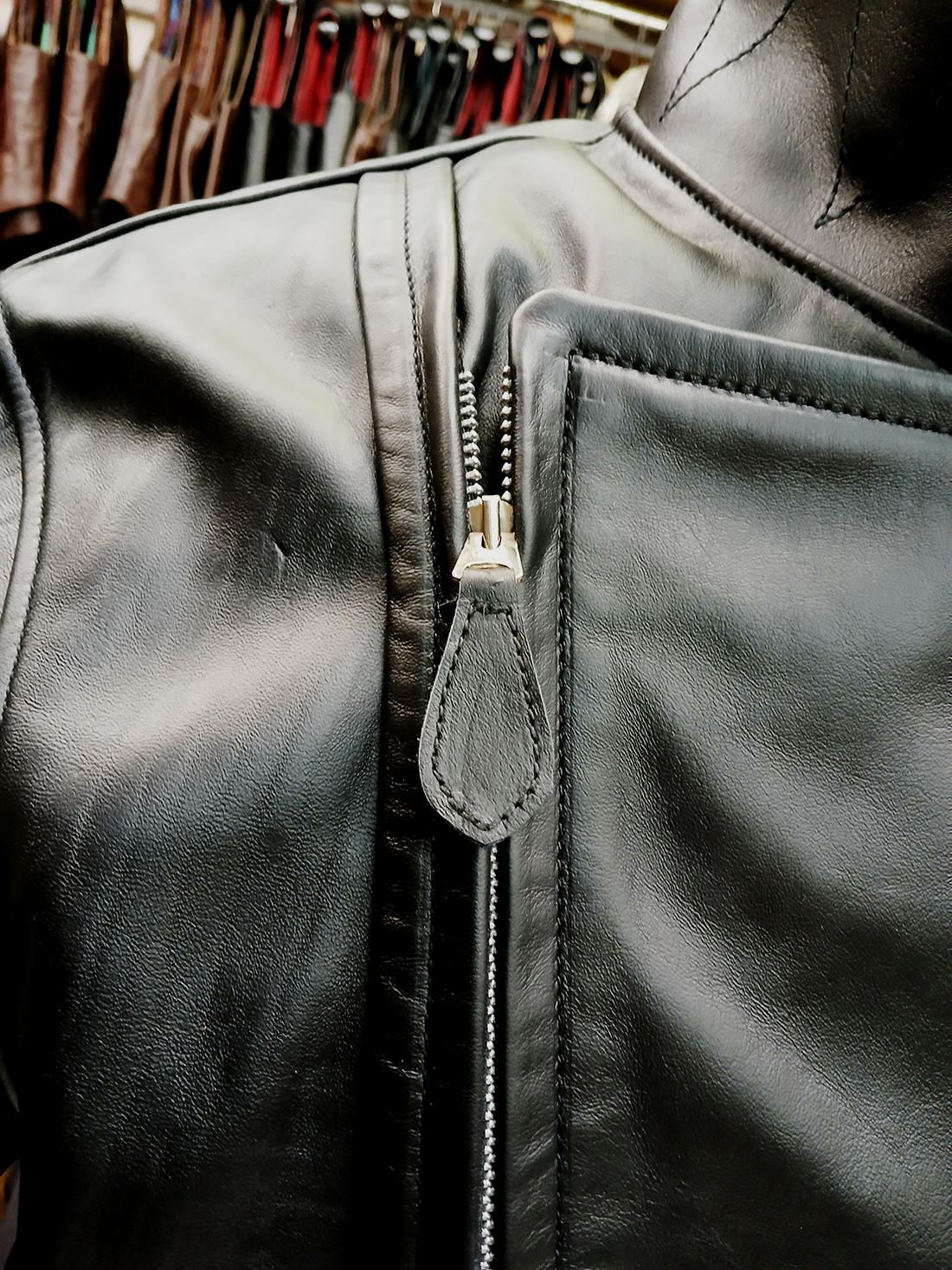 - 3.0 - 5.0 Oz. Hides (Customer Preference) - NOS Vintage Brass or Nickel Talon, Scovill, C&C (Crown) Zippers - NOS Detachable Vintage Mouton Collar -Welted Main and Chest Zippers - 100% Cotton Interlining -Leather Reinforced Waist Panel - Leather Waist Lacing - 100% Heavyweight Nylon Flight Satin Lining w/ Zippered Interior Pocket