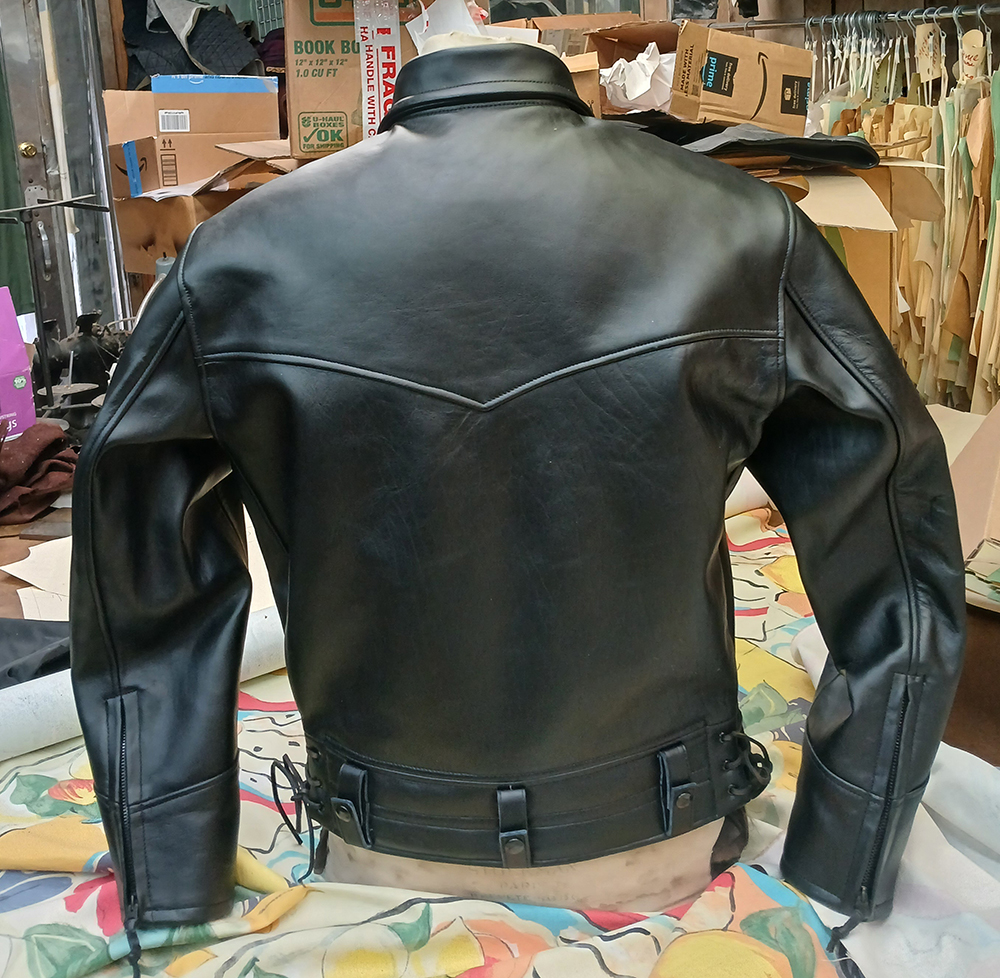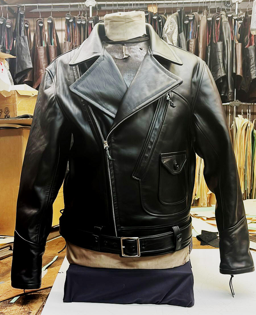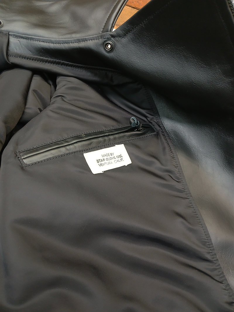 Today, tradition, values, ethics, masculinity and Truth are That now distant past melded function, craft and aesthetics in ways unknown to today's robotic lemmings. But once upon a time things had to look as good as they performed.... Form and function. STAR GLOVE (later, CALIFORNIA LEATHERWEAR) of Ventura, California 1930s-70s was a premier manufacturer of high quality classic highway patrol and motorcycle jackets. Jackets imbued with presence and integrity. Our elite STAR GLOVE Motorcycle Jacket recreates a scarce, striking late 1930s-early 40s masterpiece. And displays strong local connections to another rare. elite mfg. -- TROJAN Leatherwear LA/Ventura -- in collar, cut and chest pocket configuration.