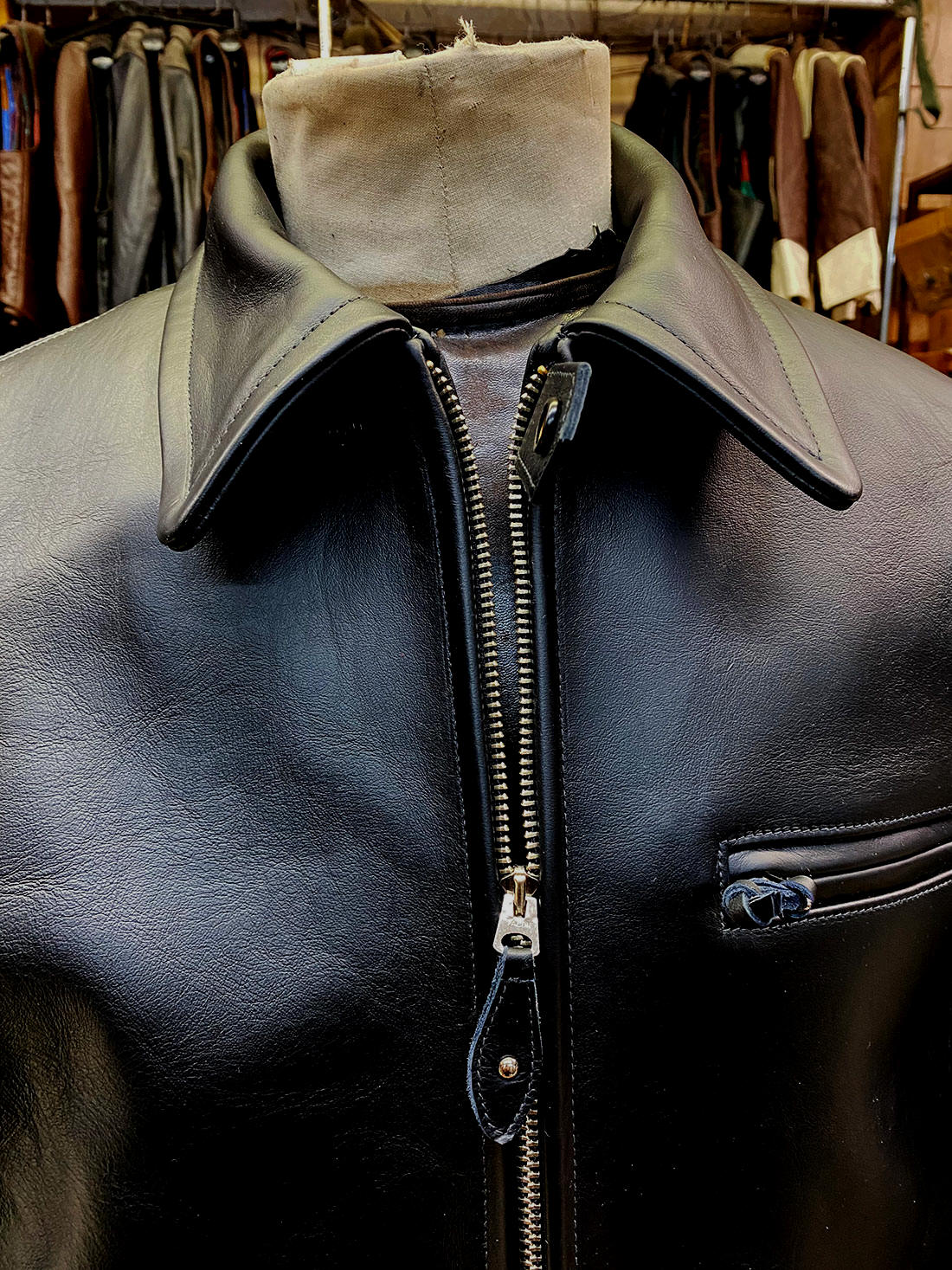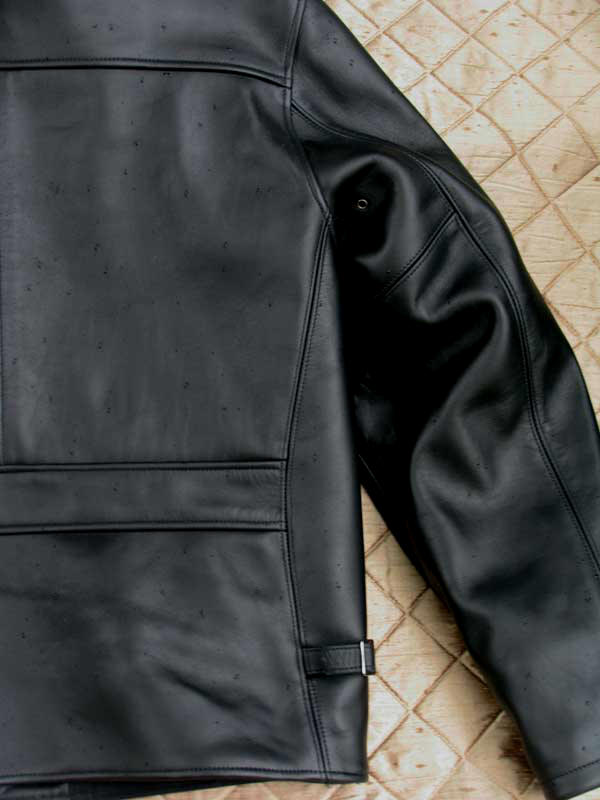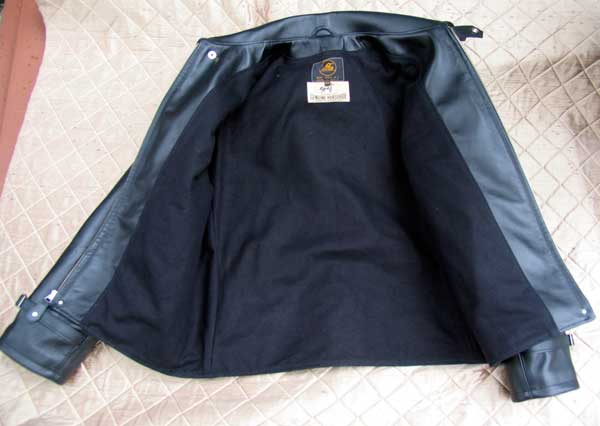 and grain -- to rugged 15 oz. Black Cotton Duck Lining, to period riveted zipper tabs, in-sleeve 100% Wool