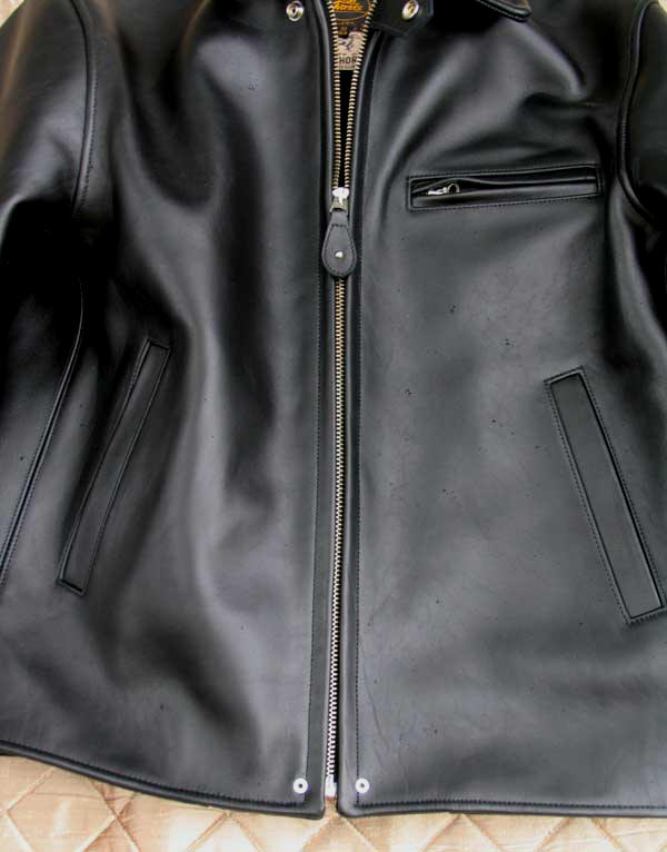spectacular reproduction of a scarce c.1930s Horsehide Motorcycle/Work Jacket. From the dreadnaught hides -- exceeding the original in weight