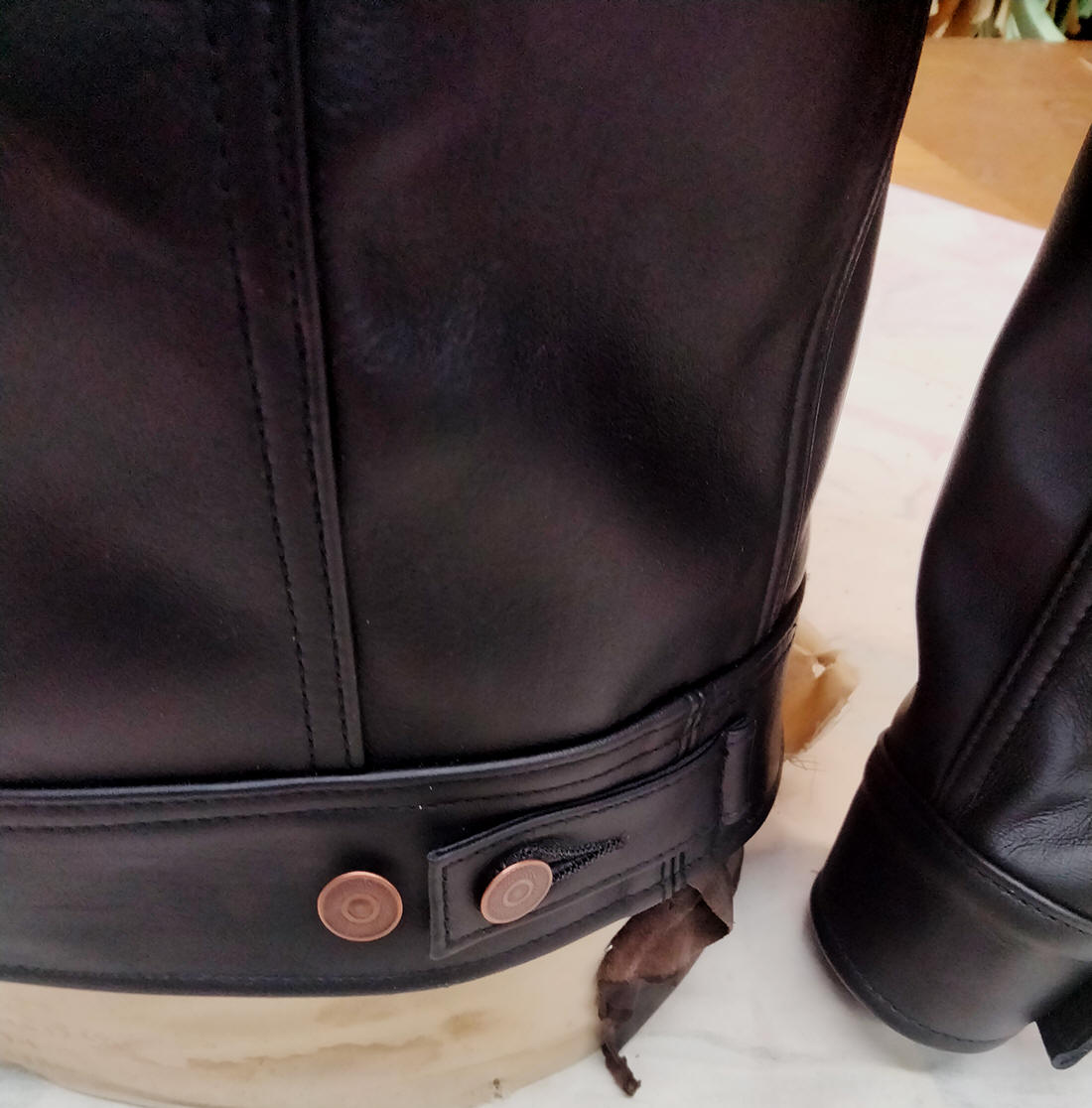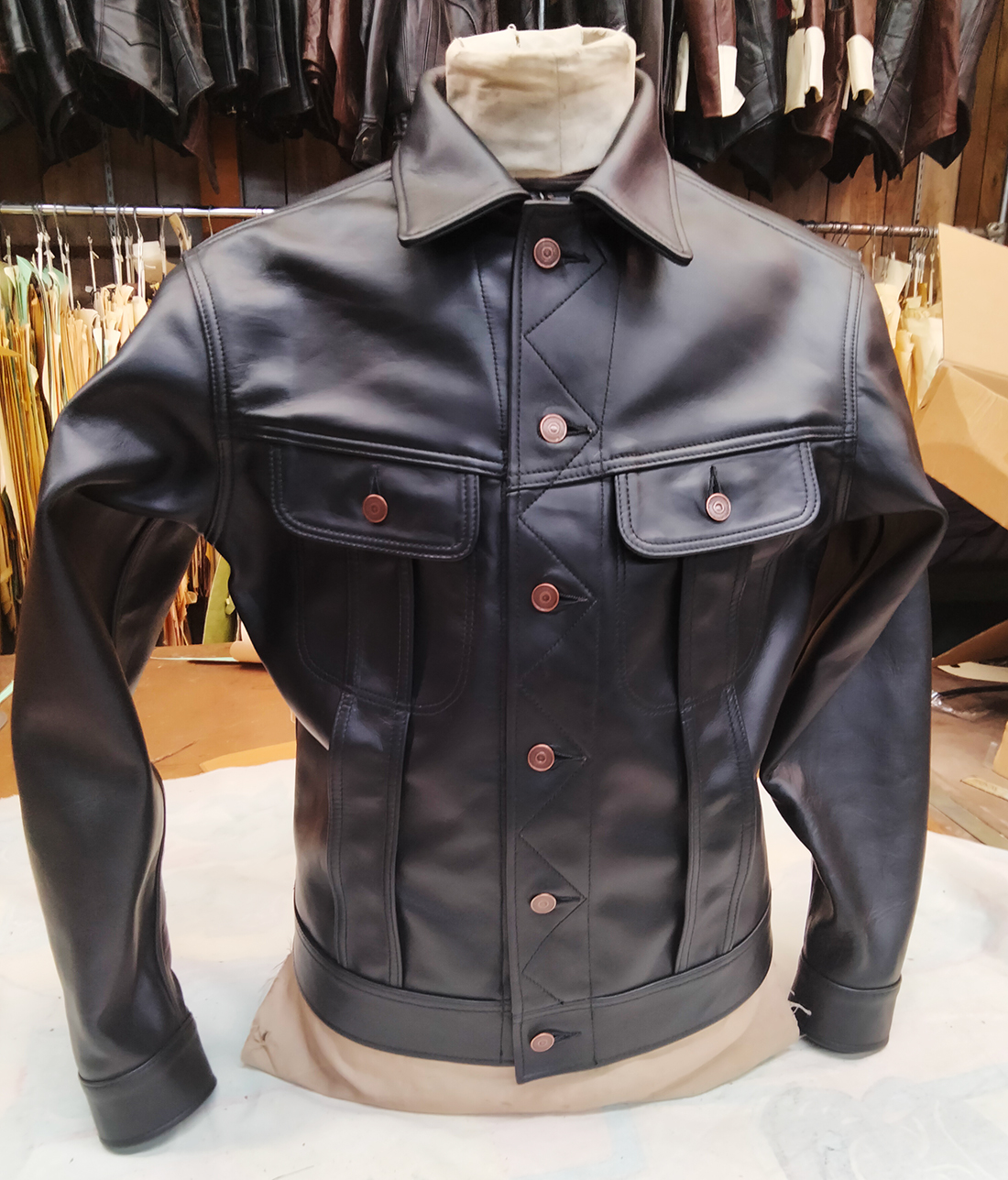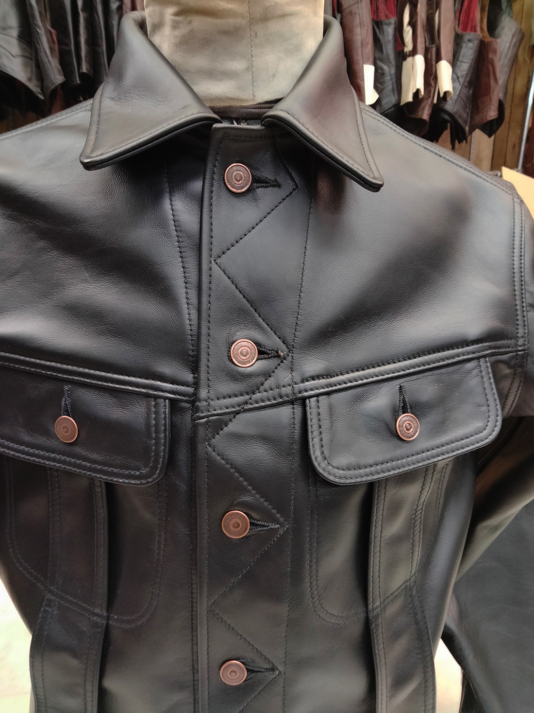 Lost Worlds leather. Immaculate stitchwork on display